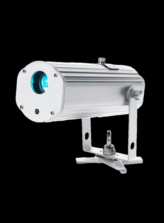 Battery powered GOBO projector powered by a 10-Watt Quad (RGBA 4-in-1) LED